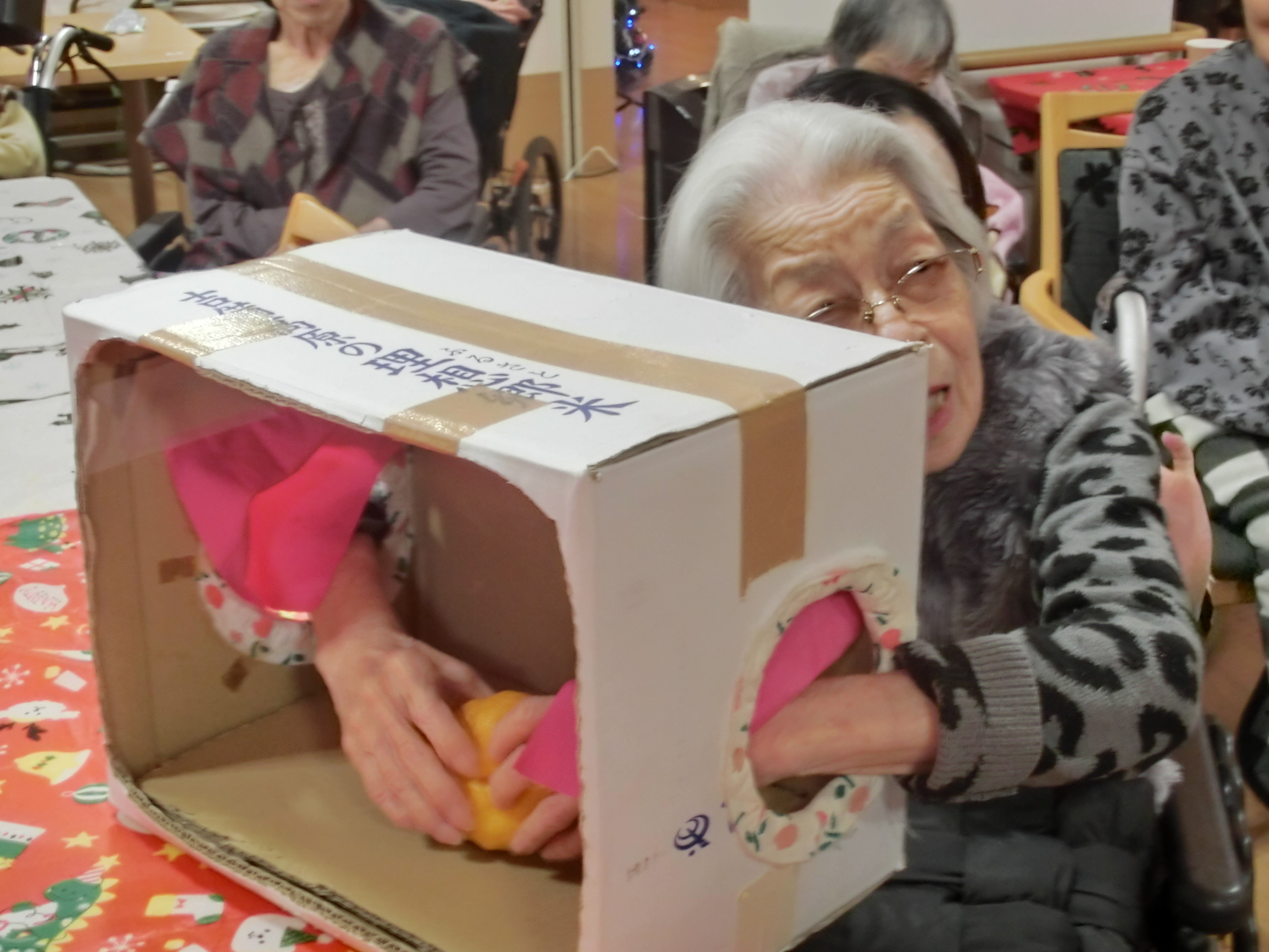 〔箱の中身はなんだろろうな?〕ゲームでは、どなたもちょっぴり不安気に恐々そ~っと手を入れて